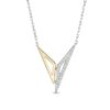 Created in sterling silver and warm 10K gold, this asymmetric "V"-shaped look features two open triangular shapes – one silver and sparkling with diamonds, the other in polished gold. Captivating with 1/10 ct. t.w. of diamonds and a brilliant buffed luster, this style suspends centered along an 18.0-inch cable chain, with an additional closure ring at 16.0 inches, that secures with a spring-ring clasp.This exclusive fine jewelry collection inspires you to wear your strength, confidence and power.